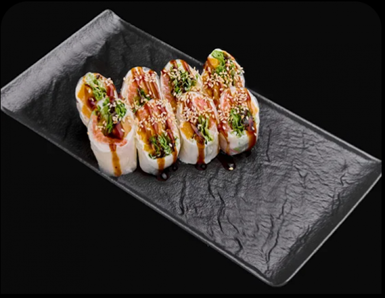 Спрінг Рол з Лососем та Манго «Sushi Zoom»(рисовий папір, лосось, авокадо, крем сир, манго, соус понзу, кунжут)170 гцена : 239 грн доставка по Измаилу: 120 грн