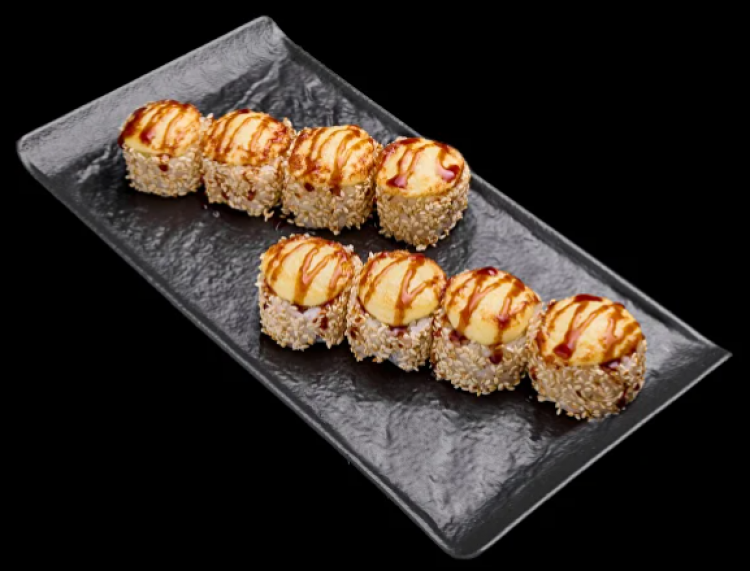 Запечений Сезам Рол «Sushi Zoom»(рис, норі, крем сир, огірки, моцарелла, пармезан, японский майонез, кунжут, унагі соус)260 гцена : 159 грн доставка по Измаилу: 120 грн