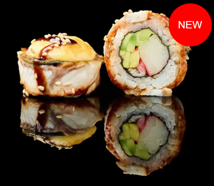 Запечена філадельфія з вугрем «Sushi Zoom»(рис, норі, вугор, авокадо, сурімі, ікра масаго, японський майонез, моцпрела, пармезан, унагі соус, чорний та білий кунжут)345 гцена : 380 грн доставка по Измаилу: 120 грн