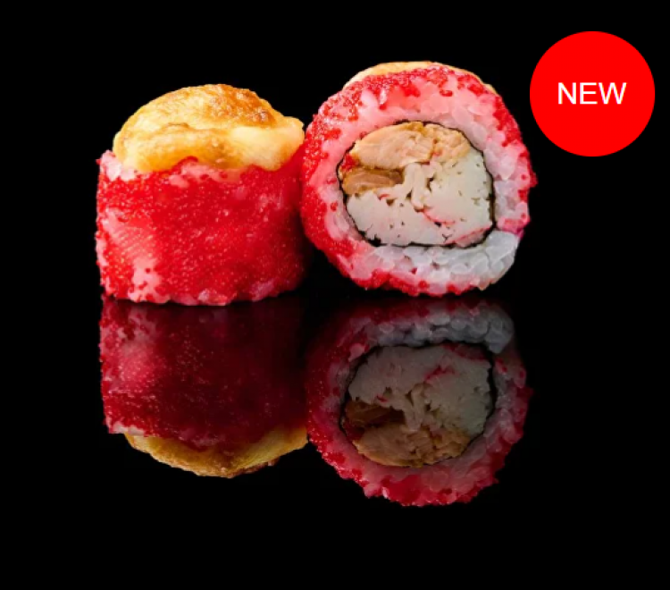 Запечена Каліфорнія з Масаго «Sushi Zoom»(рис, норі, ікра масаго, смажений лосось, сурімі, моцарела, пармезан, японський майонез, унагі соус)280 гцена : 255 грн доставка по Измаилу: 120 грн