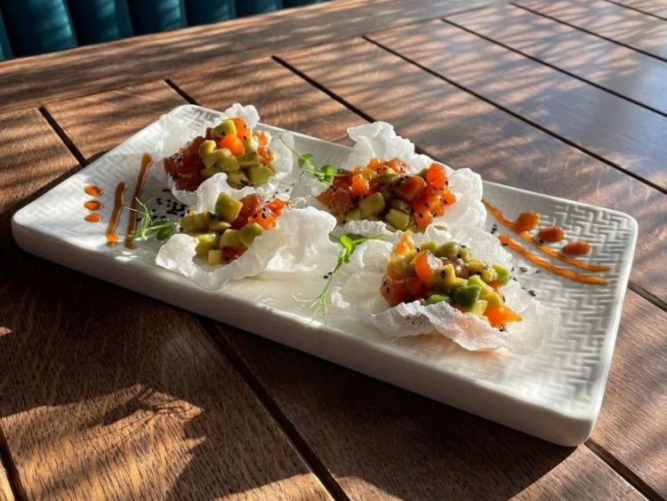Морська перлина з лососем «CheBurek»Рисові чіпси, авокадо, лосось, кунжут, оливкова заправка.цена : 470 грн доставка по Измаилу: 120 грн