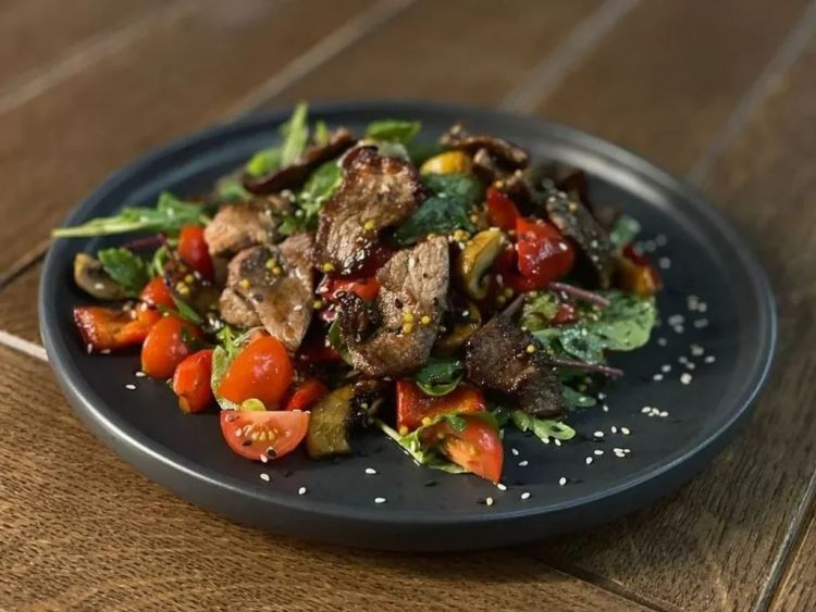 Теплий салат з телятиною «CheBurek»Смажена телятина, болгарський перець, чері, мікс салатів, медово-гірчична заправка, кунжут.430гцена : 398 грн доставка по Измаилу: 120 грн