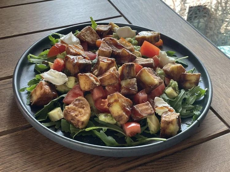 Салат з хрусткими баклажанами «CheBurek»Баклажани, томати, рукола, теріякі, авокадо та крем сир.300гцена : 315 грн доставка по Измаилу: 120 грн