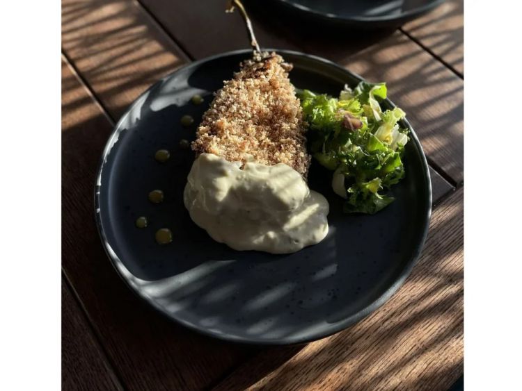 Баклажани з соусом дор-блю «CheBurek»Баклажан, сухарі панко, біле сухе вино, дор блю, вершки.300гцена : 340 грн доставка по Измаилу: 120 грн