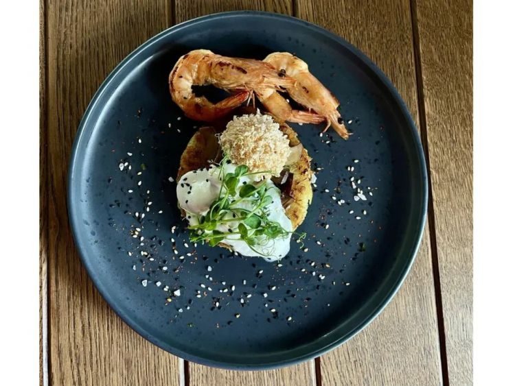 Деруни з креветкою «CheBurek»Печериці, картопля, креветка, імбир, вершки, перець чилі, мікрозелень, яєчний жовток.210гцена : 349 грн доставка по Измаилу: 120 грн