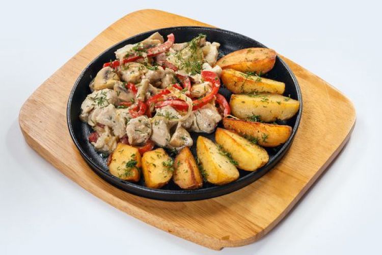 Зі свинини,з картоплею і овочами «Zeytun»(500 гр)Свинина,цибуля,гриби,картопля,помідор черрі,зелень,часник.цена : 360 грн доставка по Измаилу: 120 грн