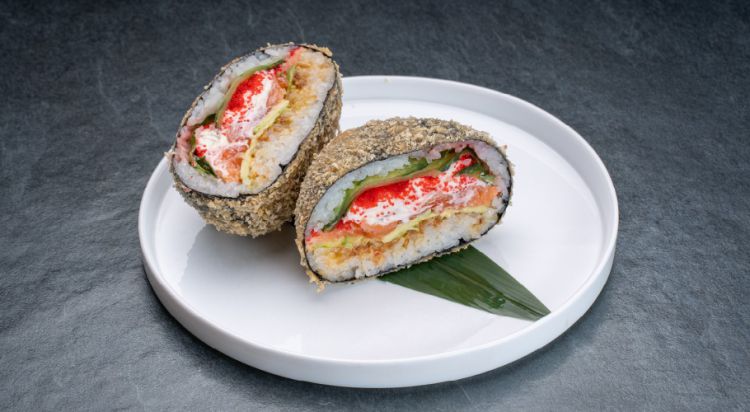 Суші Бургер з лососем «Dream Life»лосось, крем-сир, ікра масаго, лист айсбергу, огірок, горіховий соус, соус спайсі300гцена : 360 грн доставка по Измаилу: 120 грн
