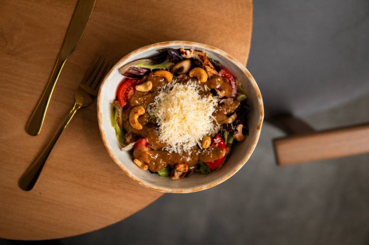 «Pausa»Ну не просто так ми вирішили цей салат зробити нашою фірмовою пропозицією.Закохалися з першого куся. Найкраще поєднання горіхів, карамелізованої груші, курки, грибів, салату і неймовірного соусу.