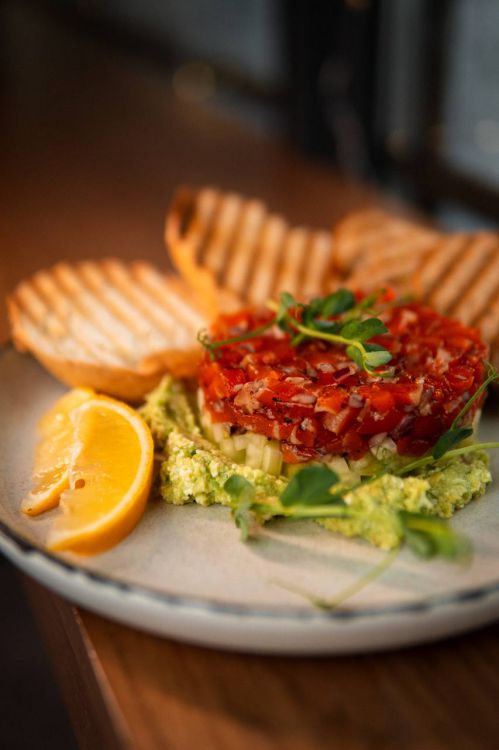 «Pausa»Лосось, ніжний і вишуканий, вирішив влаштувати ідеальну вечірку смаків! До нього приєдналися вершкова фета, кремове авокадо та хрусткі огірки, які додають свіжості. Червонощока цибуля внесла трохи пікантності, а сухарики з білого хліба – фінальний хрумкий
