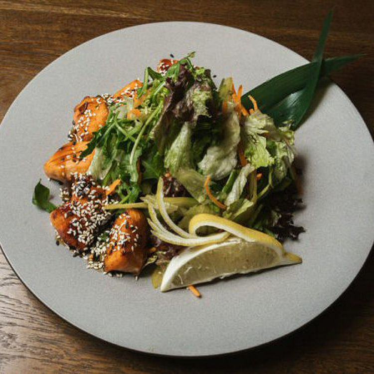 Сяке-кошо микс-салат «Avenue 25»Микс салатов, фламбированый лосось, болгарский перец, морковь, соус «Понзу», кунжут, соус «Унаги» Вес 200г.цена : 380 грн доставка по Измаилу: 120 грн