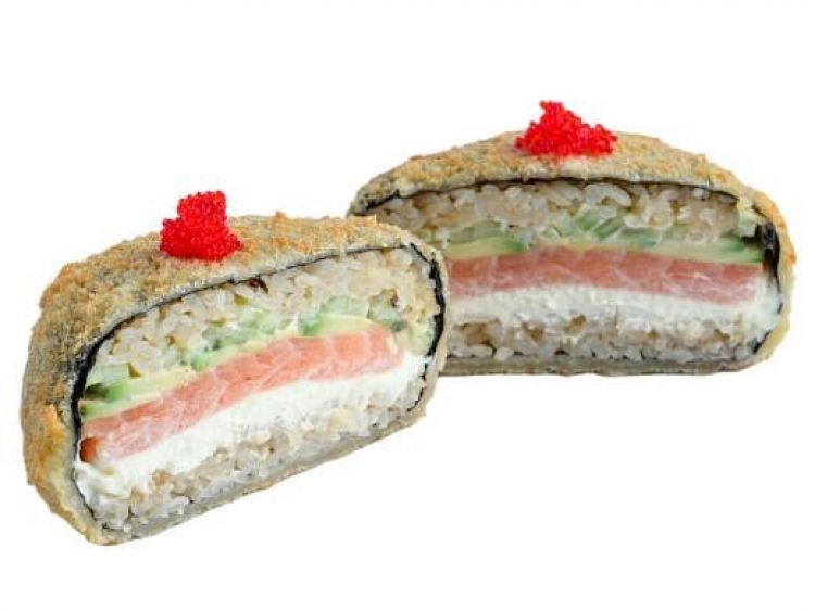 Суші бургер з лососем «Chin-Chin»Рис в вершковому унагі, лосось, авокадо, сир філадельфія, сухарі панко, ікра тобіко, соус чилі майо300гцена : 349 грн доставка по Измаилу: 120 грн