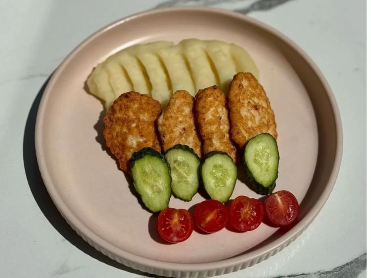 Ніжні курячі котлетки з картопляним пюре «Гурман»Пюре, огiрок, томати250гцена : 131 грн доставка по Измаилу: 120 грн