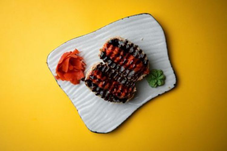 Фірмовий бургер «NaDivane»Вага: 350грРис, сир філадельфія, сир тостовий, креветка, авокадо, лосось, соус спайс, ікра масаго.цена : 330 грн доставка по Измаилу: 120 грн