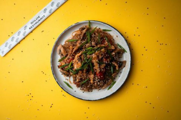 Фунчоза з куркою «NaDivane»Вага: 370грКуряче філе, гриби, чері, фунчоза, соус кімчі, соєвий соус, цибуля зелена, кунжут.цена : 180 грн доставка по Измаилу: 120 грн