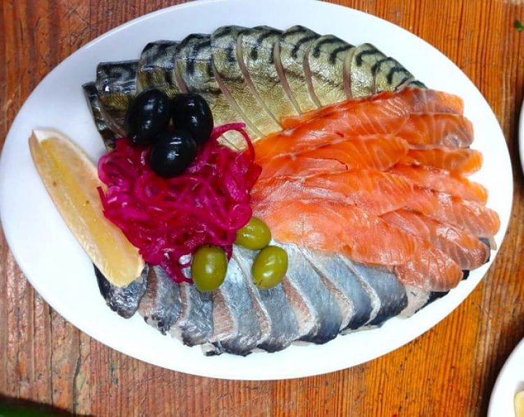 «Zeytun»У наше рибне плато входить: найпопулярніша риба - скумбрія копчена, оселедець малосольний, сьомга малосольна.