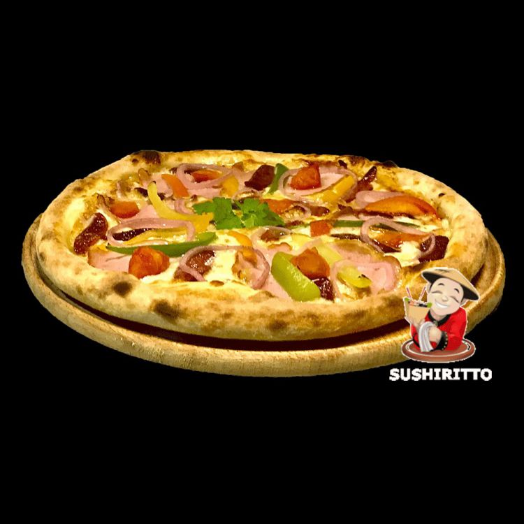 BBQ «SushiRitto»Соус BBQ, моцарелла, мисливські ковбаски, свинячий окіст, болгарський перець, синій цибуля.цена : 290 грн доставка по Измаилу: 120 грн