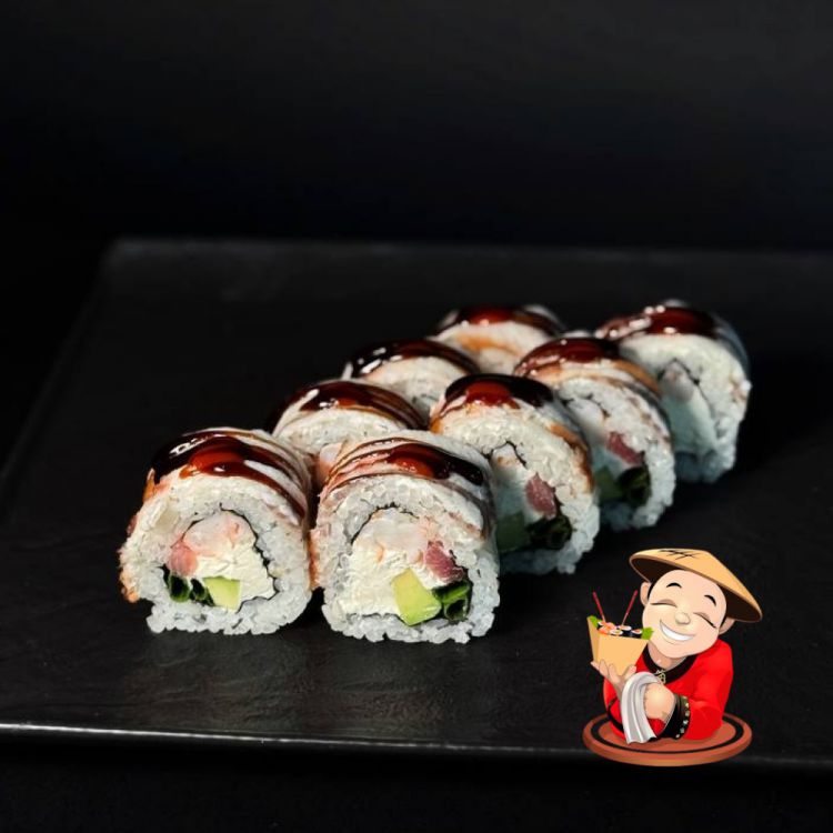 Дабл Фіш «SushiRitto»Копчений вугор, тигрова креветка, тунець, вершковий сир, авокадо, огірок, японський майонез, соус Кімчі, Унагі соус280 гр.цена : 350 грн доставка по Измаилу: 120 грн