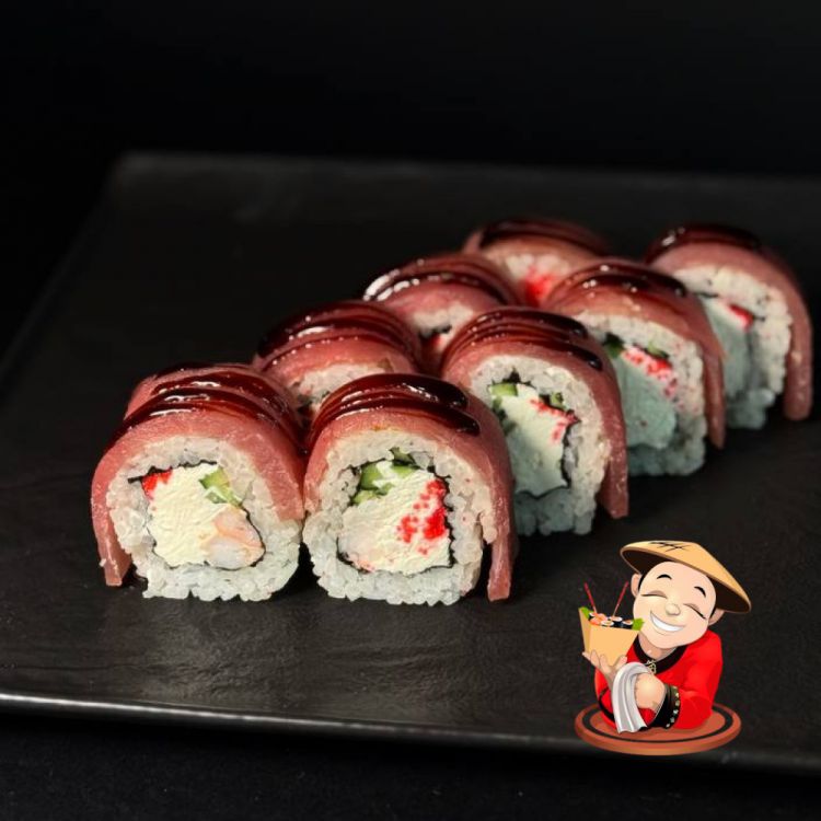 Червоний дракон «SushiRitto»Рис, сир, огірок, креветка, ікра тобіко, тунець, унагі290 гр.цена : 290 грн доставка по Измаилу: 120 грн