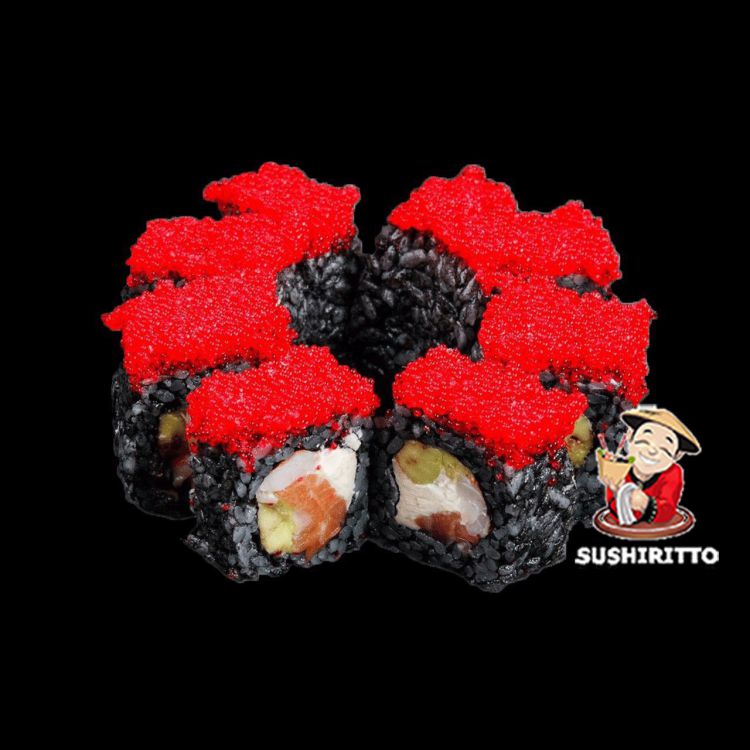 Ніко «SushiRitto»Рис, норі, свіжий лосось, тигрові креветки 2шт, вершковий сир, авокадо, ікра летючої риби, чорнило каракатиці240 гр.цена : 320 грн доставка по Измаилу: 120 грн