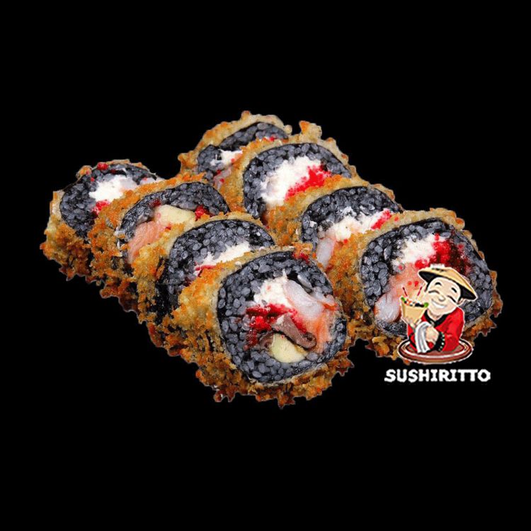 Каторі «SushiRitto»Рис, норі, вершковий сир, свіжий лосось, тигрові креветки 2шт, ікра летючої риби, авокадо, чорнило каракатиці, борошно Темпура, сухарі Панко 280г.цена : 340 грн доставка по Измаилу: 120 грн