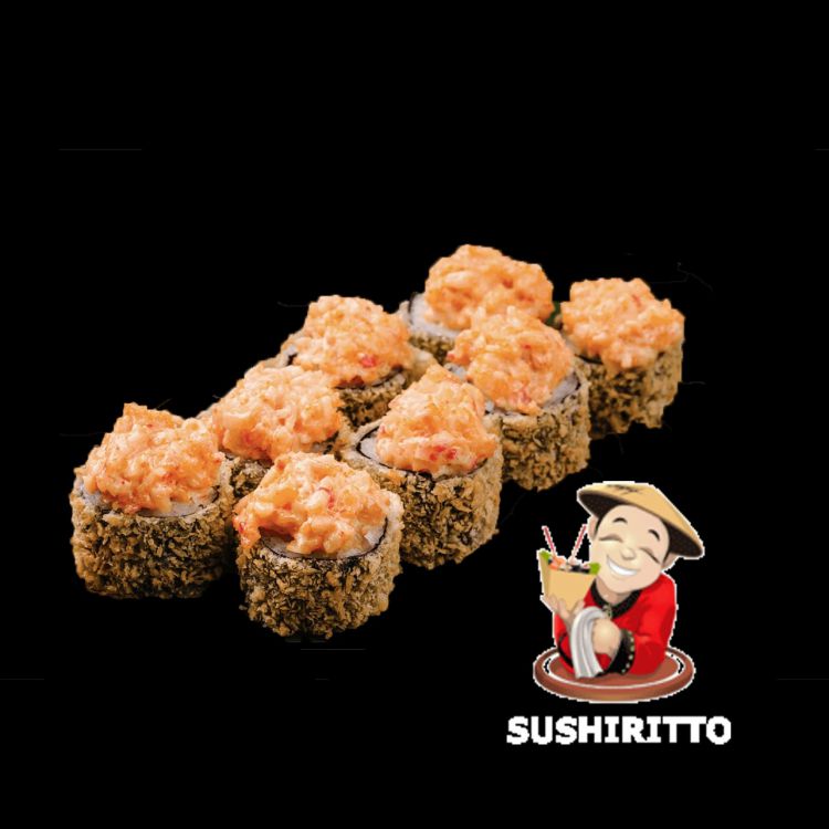 Нобу «SushiRitto»Свіжий лосось, сніжний краб, вершковий сир, ікра Тобіко, соус солодкий чилі, обсмажений у Темпурному клярі та сухарях Панко280 гр.цена : 325 грн доставка по Измаилу: 120 грн