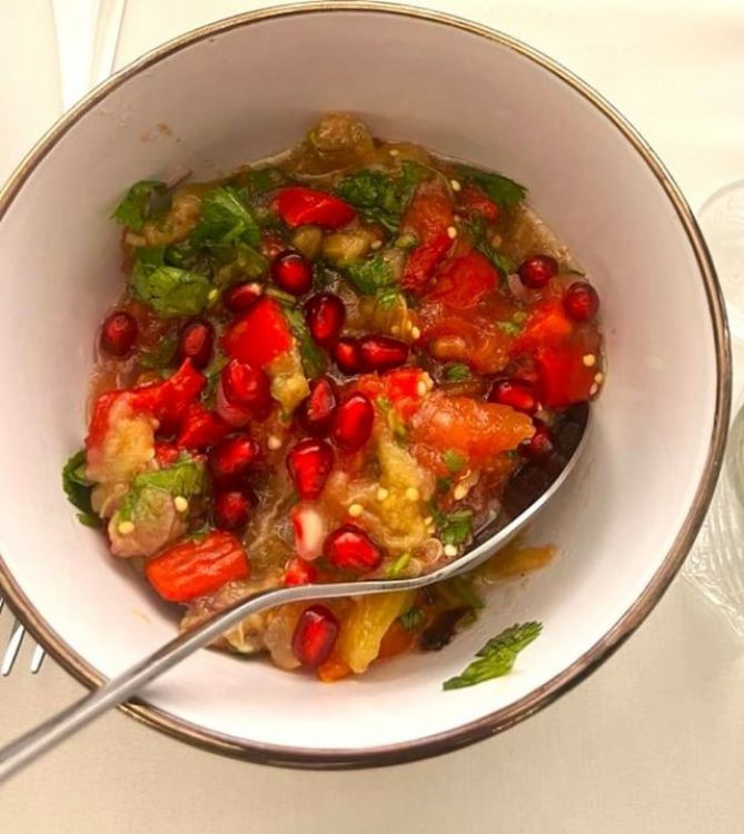 Салат з овочів, запечених на вугіллі